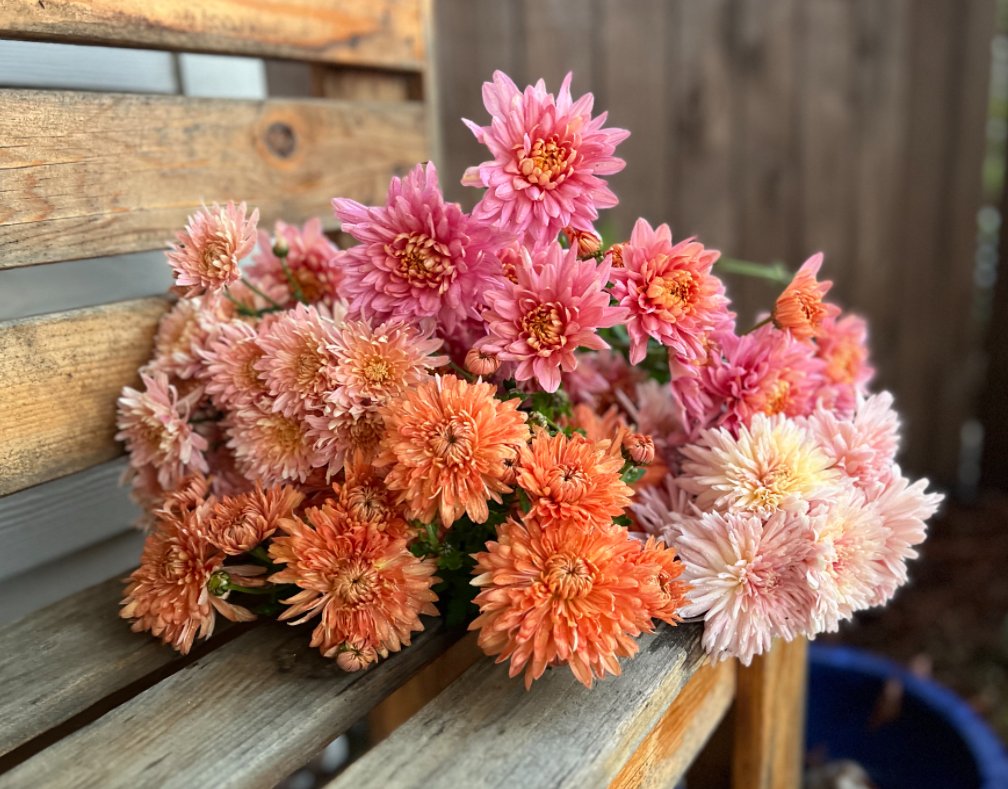This collection includes heirloom chrysanthemums and scented geranium—plants chosen for their usefulness, longevity, and quiet beauty in both the garden and the vase. From sturdy heirloom mums grown for cut flower production, to fragrant textural scented geranium for mid-late season bouquets, these varieties are a memorable addition to arrangements and cottage style gardens. I personally love to pair these two together as they are both thriving during the same time period and the scented geranium add the perfect subtle fragrance that chrysanthemums (and many other late summer/fall flowers) are lacking.